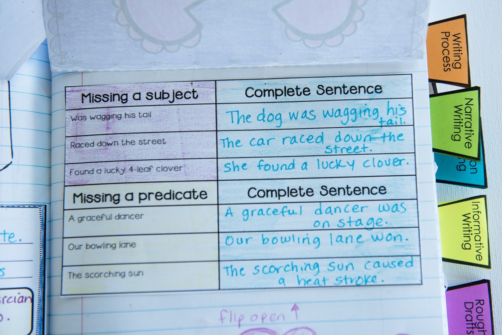 To help students understand the meaning of a fragment, take notes in a writing notebook. This will be a great reference to remind students of the skill in the future. Students should take notes and write examples. Use INTERACTIVE WRITING NOTEBOOKS or interactive digital notes. Research supports using interactive note-taking through studies on multiple intelligence, note-taking, and the brain! Here are a few videos about SETTING UP INTERACTIVE WRITING NOTEBOOKS.