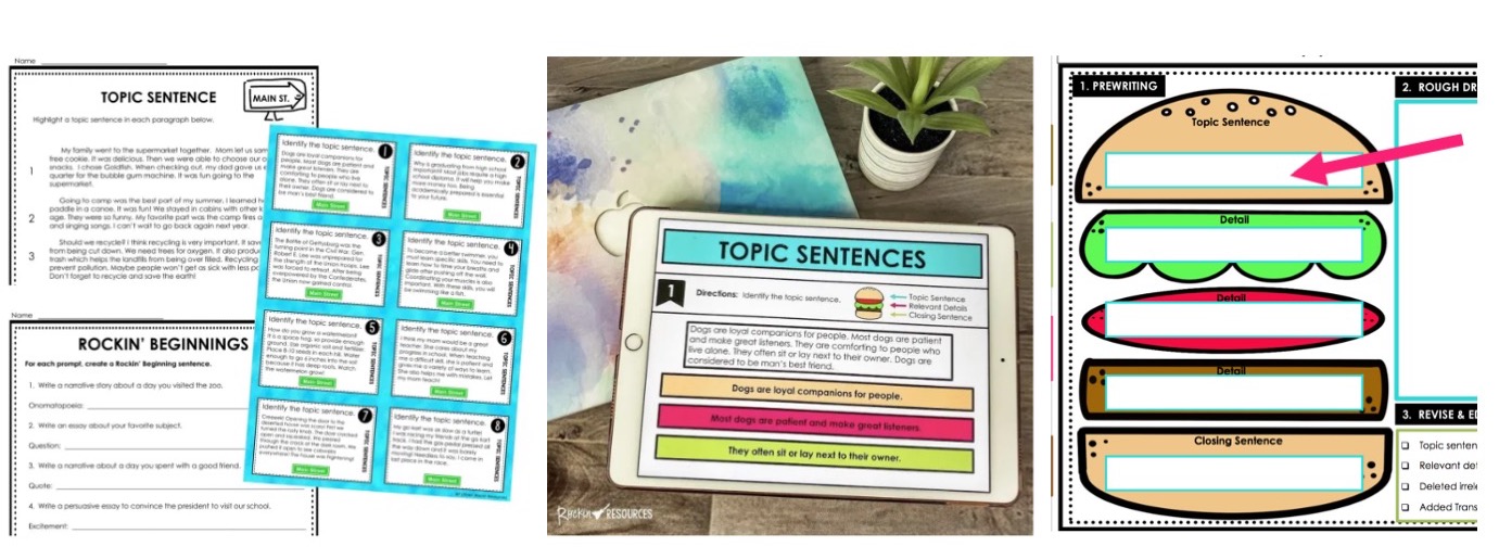 Do you want your students’ topic sentences to have Rockin’ Beginnings? This can be used to differentiate in your classroom as well. Use the following anchor chart to help students write better topic sentences. I usually wait to introduce this skill with essay writing, but sometimes there are students who are ready earlier!