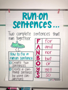 Are your students writing run-on sentences? This lesson will focus on how to correct them. These ideas are ideal for any writing curriculum and are a part of a series of mini lessons for writer’s workshop designed for scaffolding through sentence structure, paragraph writing, and the writing process. Learn ways to help students properly write two complete sentences (independent clauses) in one sentence by using the correct punctuation and conjunctions. Find out how the acronym FANBOYS are used to help students with run-ons!
