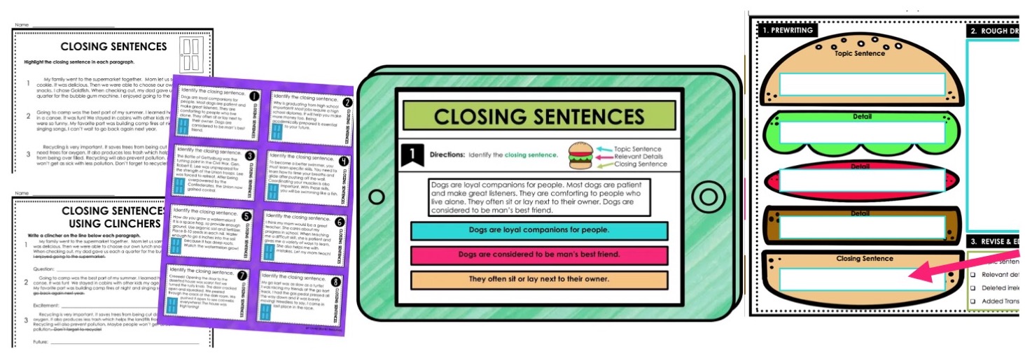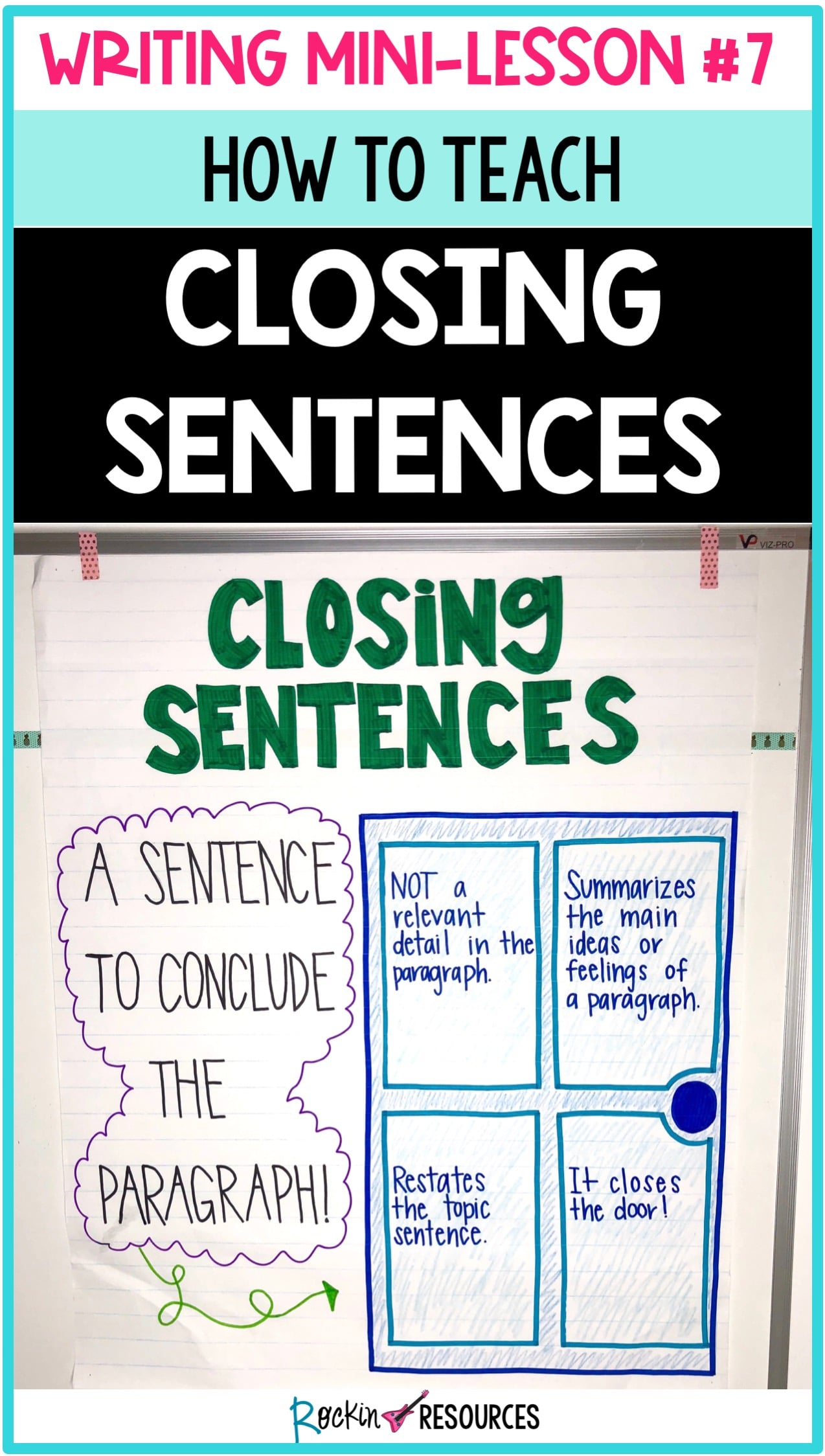 Students should take notes and write examples of closing sentences. Use interactive notes in a notebook form or digital form. It will help students establish ownership and have an effective resource to guide them when writing paragraphs in the future.