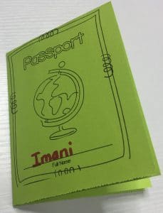 To start, I tell students they are going on a trip and need a passport. They choose a country from my list in a hat or container. Then they fill out their passports.