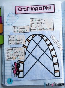 Have students take notes on plot so they have a reference next time they are developing a narrative story. If your time is limited, make a copy of an anchor chart or the notes you want them to remember and hand it out to your students to keep in a notebook. This is an example of an interactive notebook page for notes. If you don’t have my interactive writing notebooks, you can have your students draw a roller coaster and write in the notes. Then ask students to draw arrows up and down the coaster to show the direction of movement. The student sample below forgot the arrows. Oopsie!