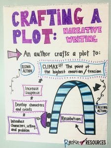 While developing the body section of a narrative story, build suspense and climax. An author creates suspense and a climax to a story to keep the readers’ interest. This is one of my favorite lessons in narrative writing! Use a roller coaster like the anchor chart used in our plot lesson.