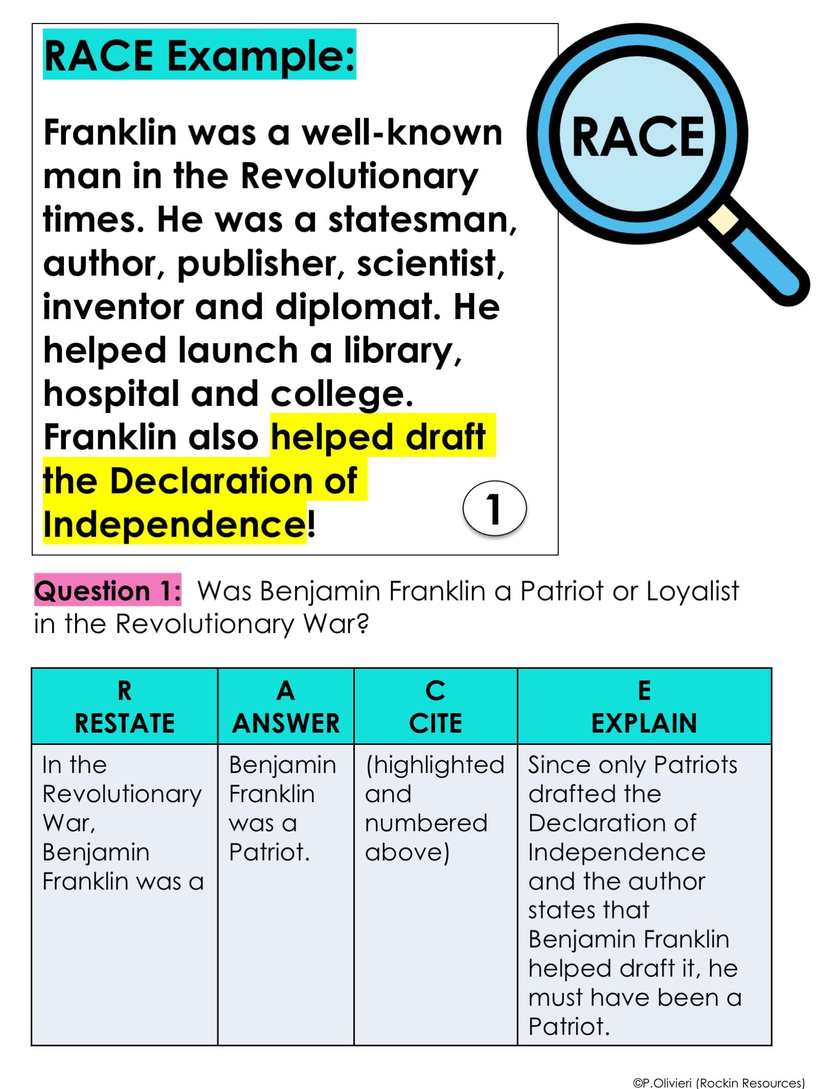 3. Introduce RACE or ACE: (RESTATE) ANSWER, CITE, EXPLAIN