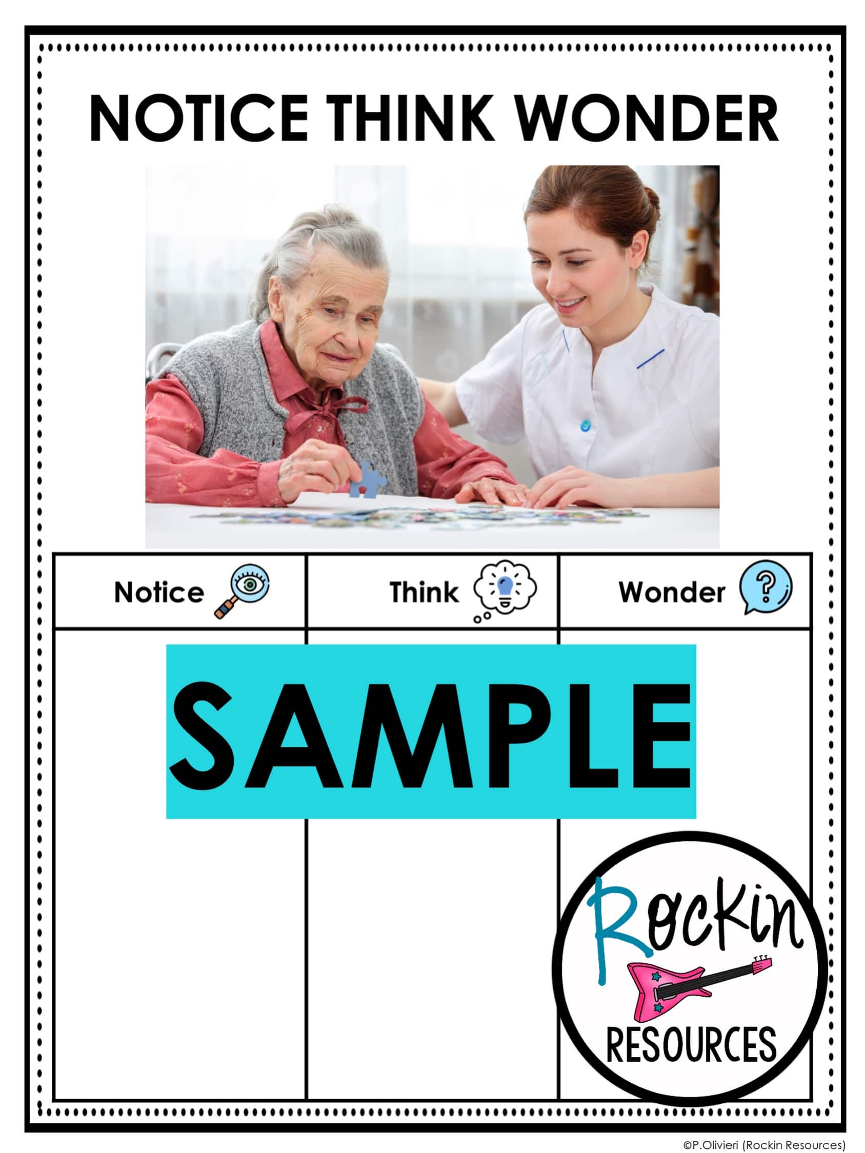 After you practice a few of these with your students, place photographs in a center or give them independent practice with Notice, Think, Wonder.