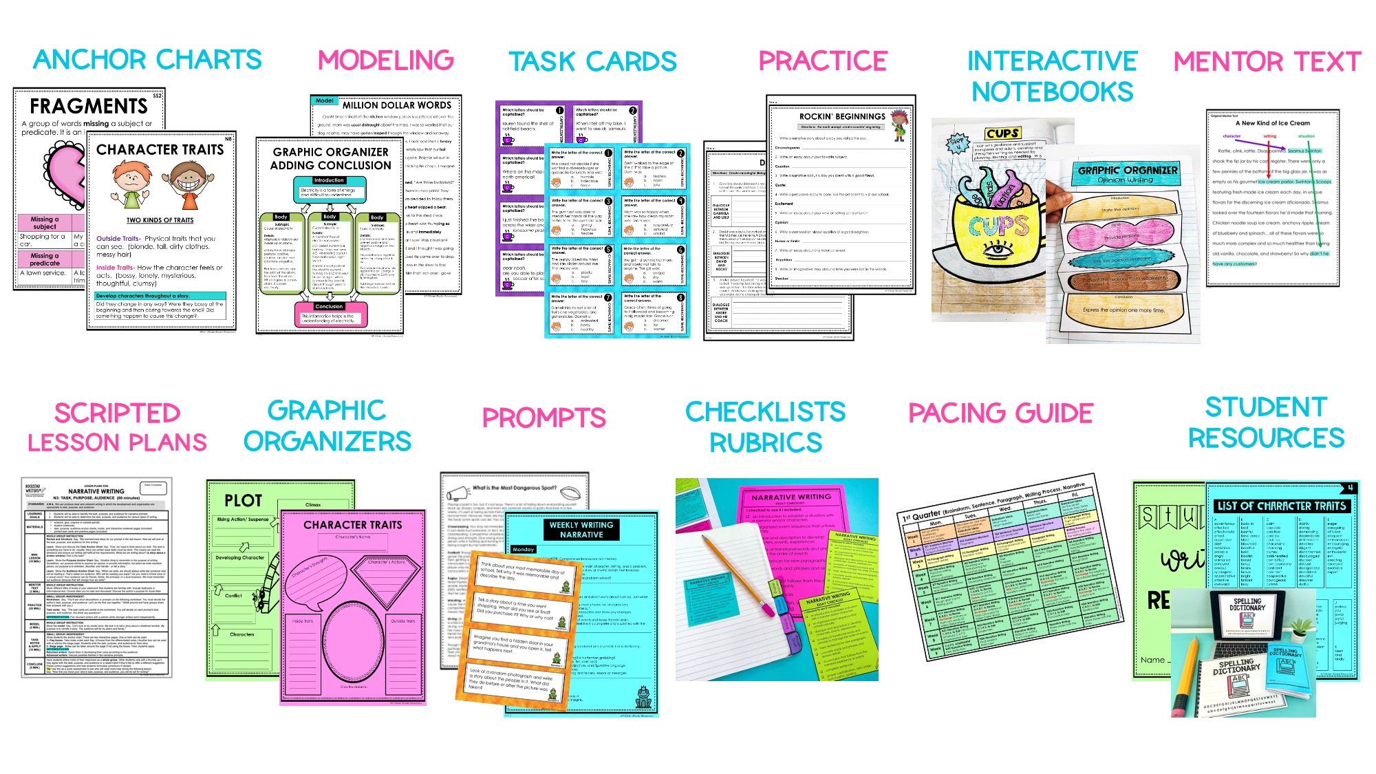 Grade level programs feature grade-appropriate mentor texts, modeled pieces, task cards, practice, and prompts tailored to the appropriate standards.