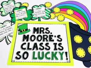 Tell students that you will all be CHARACTER ED DETECTIVES throughout the year, looking for good character traits in each other. Each month, focus on one good character trait. Children will brainstorm situations, point out what they see in others, and evaluate themselves. Have them write about someone or themselves and create a door decor to display each month. Students and other teachers, parents, and administrators will love to walk by each month to see what GOOD CHARACTER your class discovered. Students will be so proud of themselves. They will beam from ear to ear if someone else points out one of their positive traits. Homeschool parents– you can do this too! Make a spot (like the fridge) to display a written note about your children, using each trait. You can have them write about it, or you can write about them and even snap a picture of them using a particular trait!