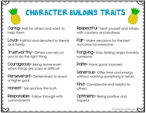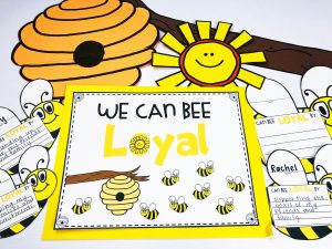I am happy to share ideas that WORK! I taught in a school that focused on character education for many years. Diane Senn, the author of Bee Your Best: A School Full of Characters, was our school counselor. She would come to our classes and teach character education. I loved how she would have our whole school focused on one character trait a month. Students and teachers alike would walk around finding positive traits in each other. So fun! I’m always trying new ways to teach and tie things together, so I picked character traits that fit into a monthly theme. This is what I planned:
