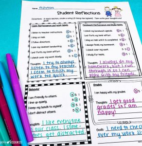 - self-evaluation of behavior, class participation, study habits, responsibility, and/or efforts