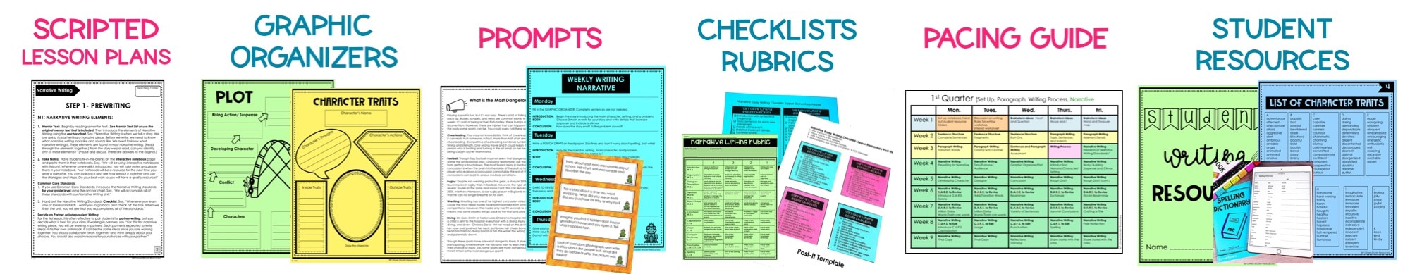 2. TIME: Give teachers everything they need right at their fingertips, including pacing guides, modeling and practice! Teachers won’t feel the need to skip over teaching writing. It saves precious time! We all know how little planning time teachers have each week. This makes it easy for them! I also break all of the lessons within each type of writing into mini lessons. That way if you are not allotted an appropriate amount of time, you can work through a piece of writing bit by bit.