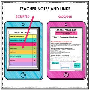 1. TEACHER NOTES: It has SCRIPTED lesson plans and ideas, links to the GOOGLE resources, answer keys, a checklist, and a rubric.