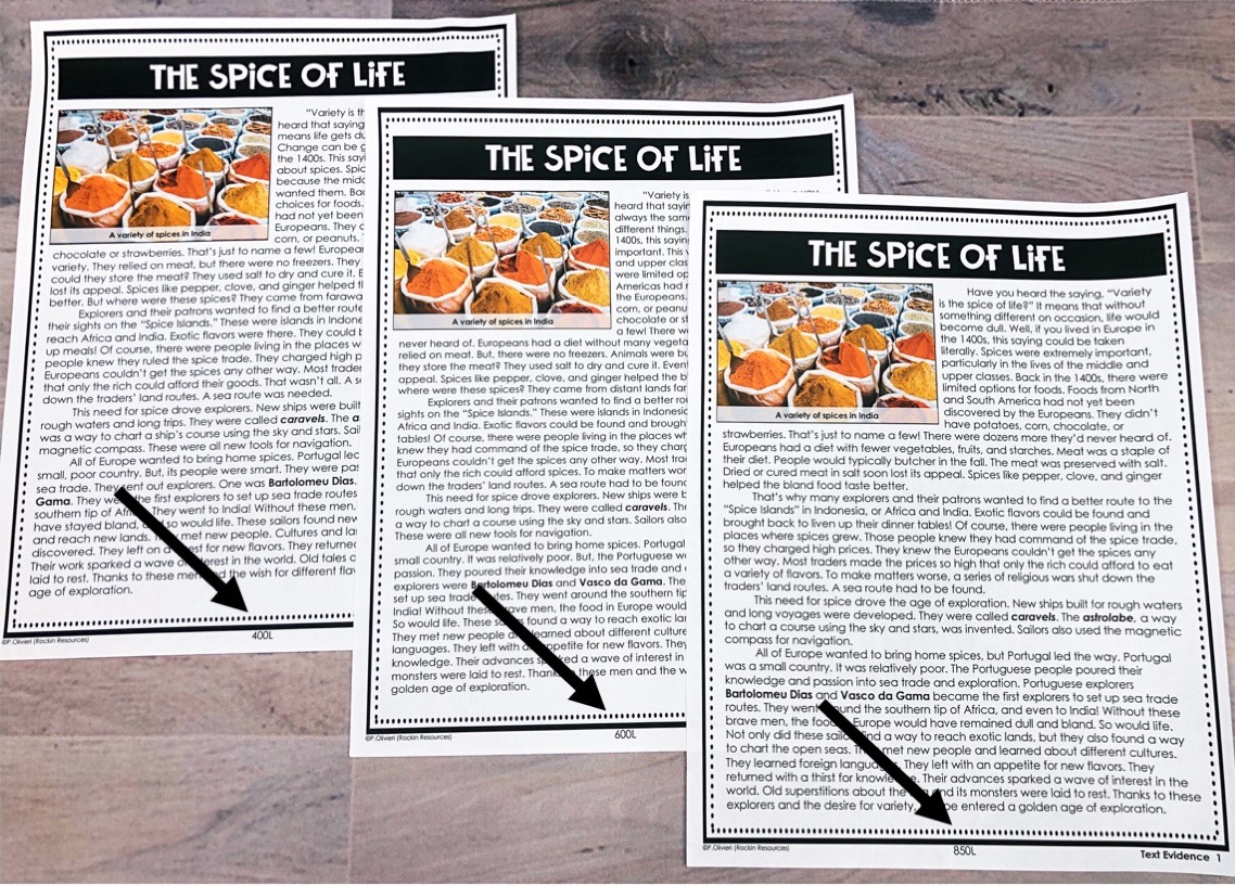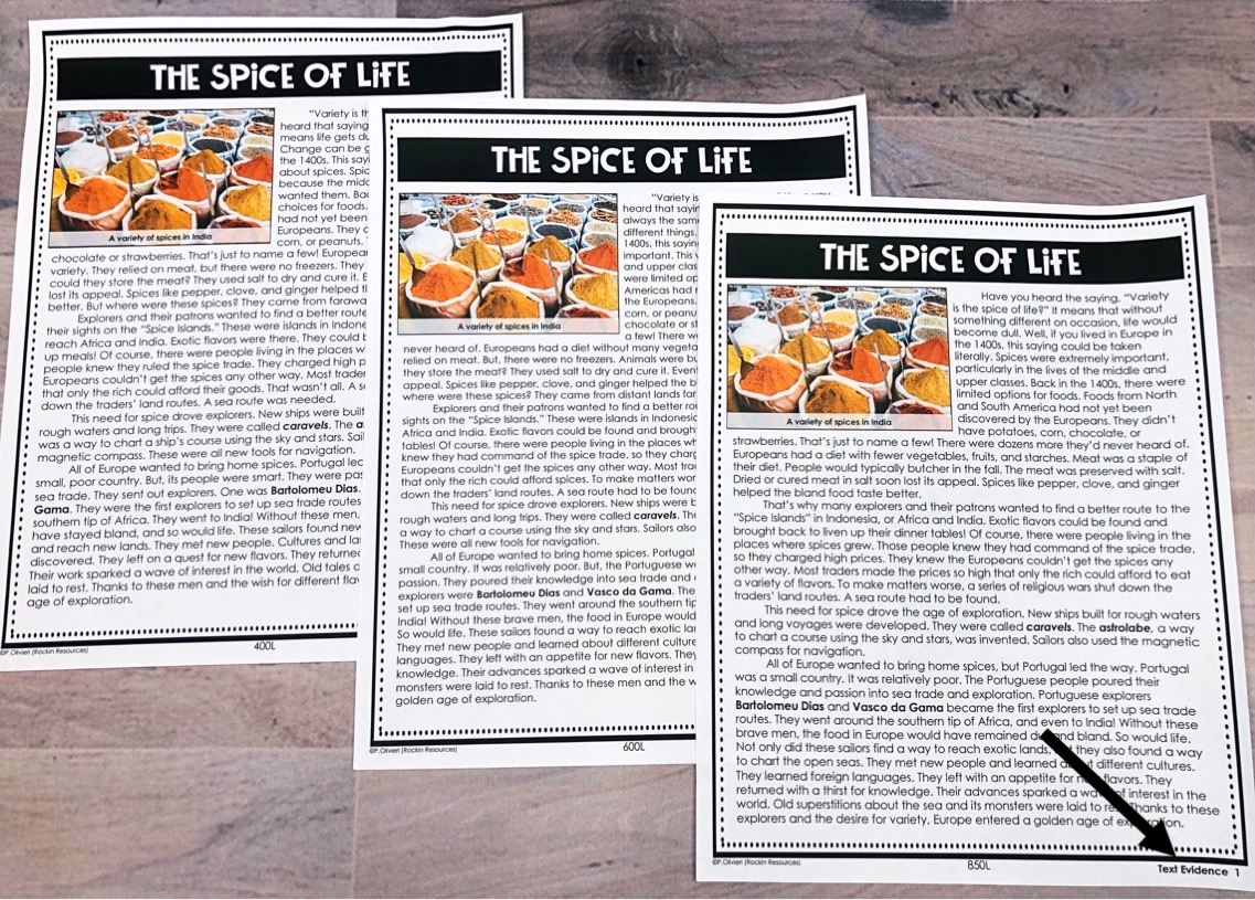 Differentiated passages have the same content, but are leveled to different Lexile reading levels. For each passage there are 3 different levels to cover a lower level, on grade level, and a higher level. Why? Not every student reads on grade level. Now, every student has the same opportunity to answer questions using the same story or information, but on their own reading level.