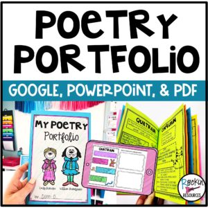 This poetry portfolio has information and examples for 16 types of poetry with adorable templates for students to write their poems! It can be used in class, at a center, or as homework since the information explains the rules of each poem with examples. When the booklets are completed, have a Poetry Slam and invite students to share their poems! Learn more about POETRY PORTFOLIO!