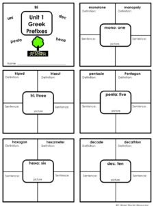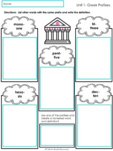 If you know me, you know I am the biggest fan of scaffolding. Start off simple. Step-by-Step. I like to start by explaining the differences between prefixes, suffixes, and root words so students have the basic foundation of what we will be studying. Then, the first two units is studying number prefixes like mono- uni- bi- tri- quad- pent- hex- oct- dec-. Students have seen these prefixes in their reading, so it eases them into the study of words. It introduces them to the study of Greek and Latin Root Words and Affixes without being too overwhelming.