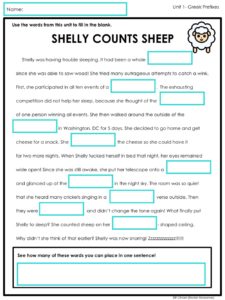 Students need to be able to understand how the words fit or “look” in a sentence. A great way to do this is with a fill-in-the-blank story.