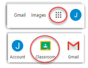Go to https://classroom.google.com/ OR https://www.google.com/