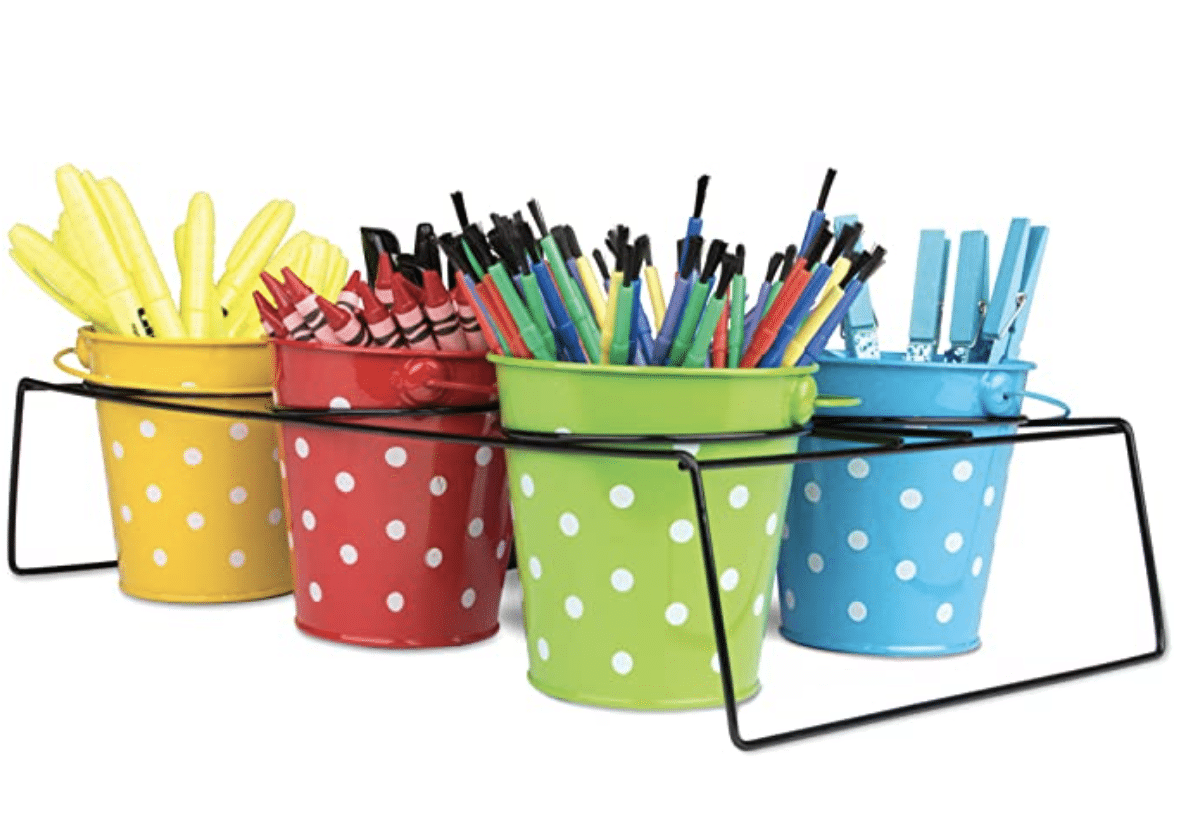 I put this adorable caddy in my writing center so that my students have exactly what they need to write with! I will typically store pencils, highlighters, erasers, colored pencils, glue, and crayons in the caddies. These also work well to hold different categories of prizes/rewards students may work toward earning if you are working with a class point system for behavior management or other purposes.