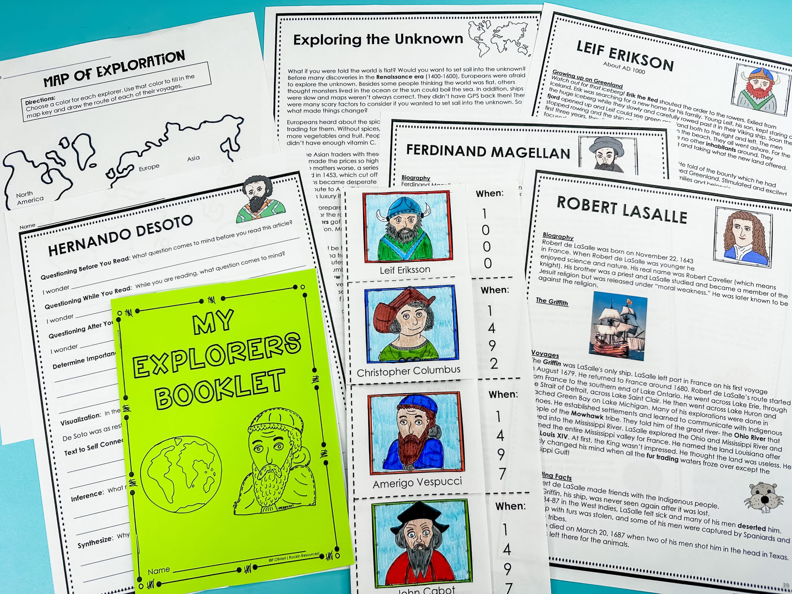 How did we get to America? Well, it took some EXPLORING! This Explorers Unit has its own informational text on eight explorers and has been divided into two units in chronological order to make the content easier for your students to learn! They will first learn about exploration terms and exploring the unknown. Then for each of the following explorers, students will map their routes, and learn about the reason for exploration along with what they discovered along the way. Students are given a variety of reading strategy questions to show their understanding of the text. The explorers are divided up into two units to make it more accessible for your students. There are foldables and quizzes included as well as a timeline project!