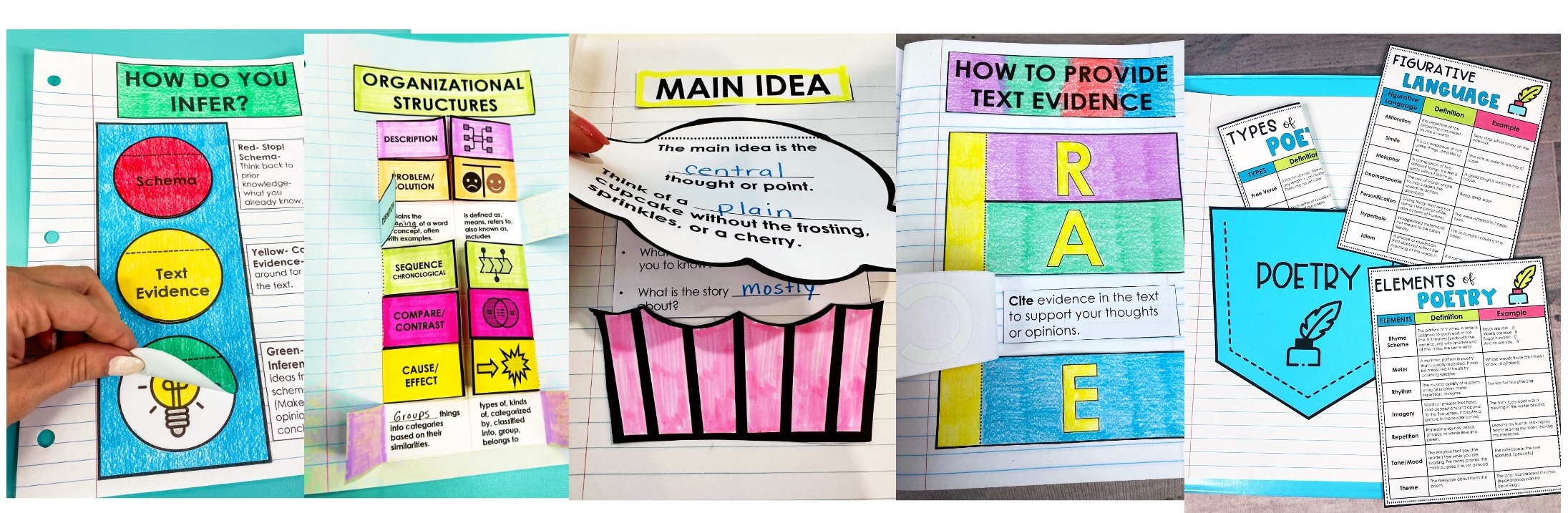 Interactive reading notebooks shift students from passive learning to active learning. Students don’t just see strategies. They build them, organize them, write them, and use them. These notebooks create a personal learning system in which students store reading strategies, skill organizers, comprehension structures, vocabulary supports, and text-analysis frameworks.