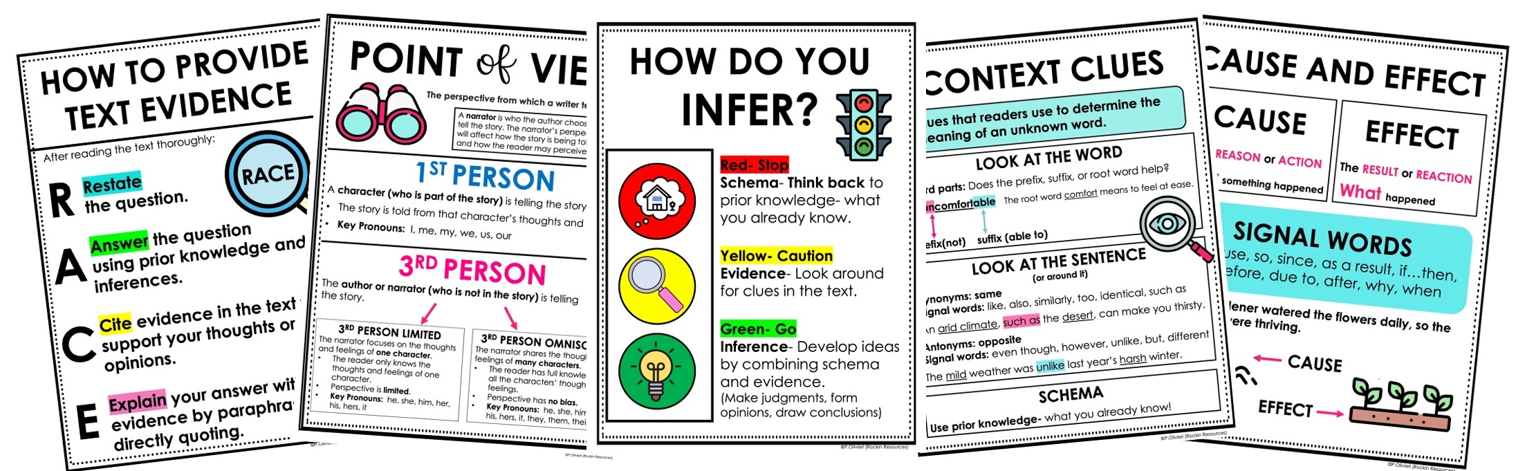 Reading Anchor Charts, Reading Comprehension Charts, Reading Skills Posters