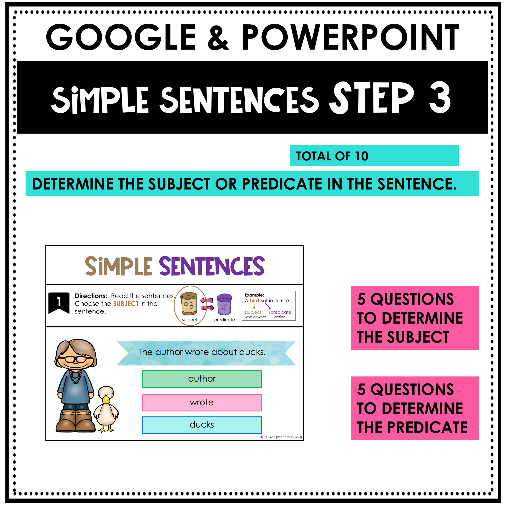 3. Determine– Students determine which word in the sentence is the SUBJECT and the PREDICATE.