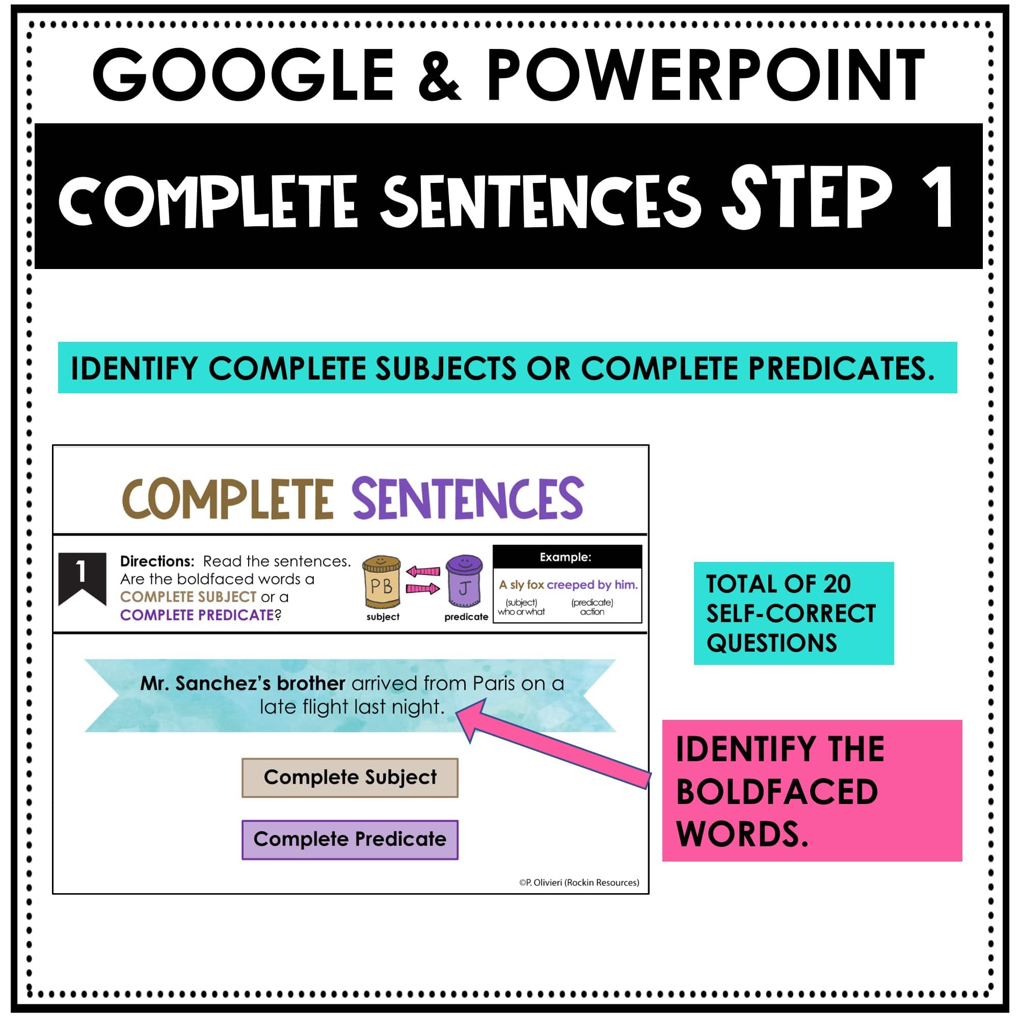 1. Identify – Students identify the COMPLETE SUBJECT AND COMPLETE PREDICATE. This is a self-check activity.