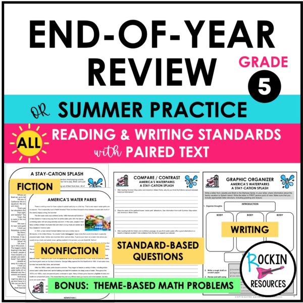 Are you looking for an end-of-year review or a summer review packet for your 5th graders? Look no further! This no-prep packet is filled with standard-based activities and high-interest passages perfect for 5th grade test prep or summer packets to prevent students from going down the summer slide! These are the perfect summer activities to keep retain what they learned throughout the year!