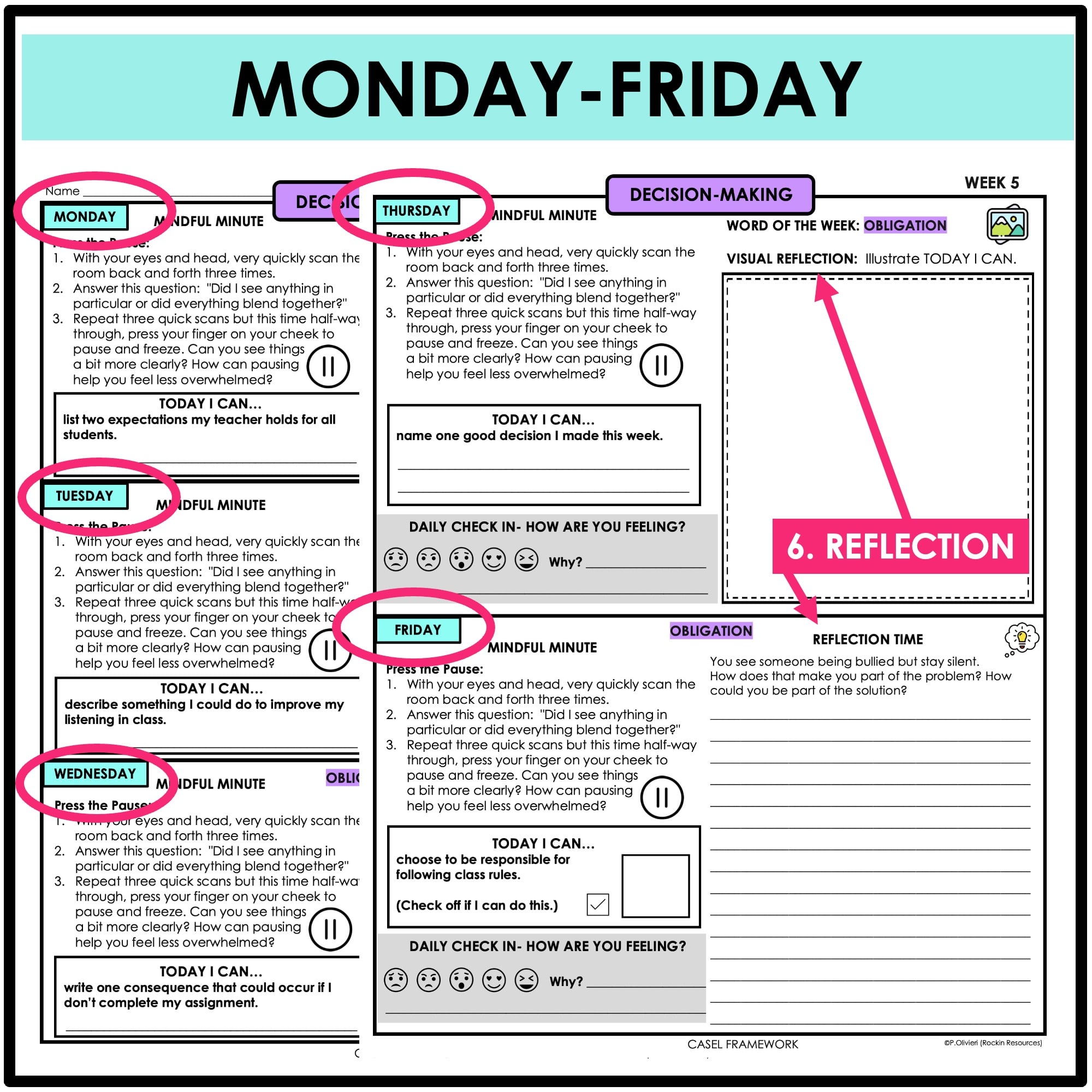 This SOCIAL EMOTIONAL LEARNING journal with Casel Framework covers all 5 CASEL COMPETENCIES. To take students confidently through the school year, each of the 5 competencies are scaffolded and repeated 7 times to provide 35 weeks of social emotional learning opportunities. It is perfect for morning work to start off the day on the right foot! A DIGITAL VERSION IS COMING SOON AND WILL BE INCLUDED!