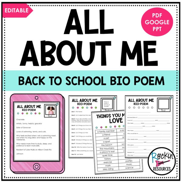 My favorite thing to do the first week of school is to let students write ALL ABOUT ME BIO POEMS! They love to write about themselves and it is super cute to put up in your hallway at the beginning of the year or keep it in the classroom all year long!