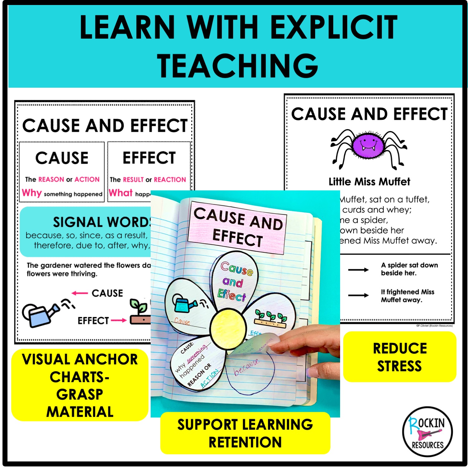 3.  ANCHOR CHART: Visual for Cause and Effect, including signal words.