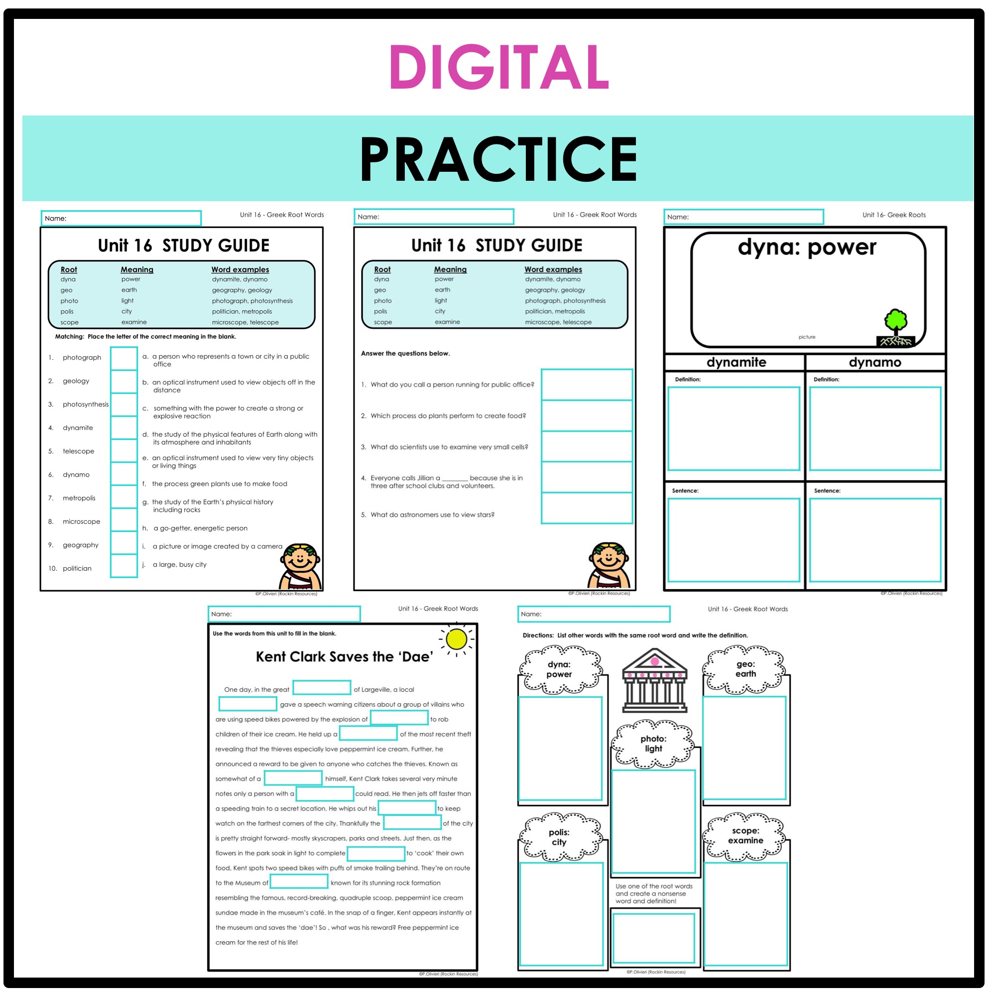 You will find 5 roots or affixes with 2 words to learn and study for a quiz. Students learn a total of 15 definitions per week (5 roots or affixes and 10 words). If you have all 20 units, students will learn a total of 300 words (100 roots or affixes and 200 words). HERE IS A LINK TO THE BUNDLE.