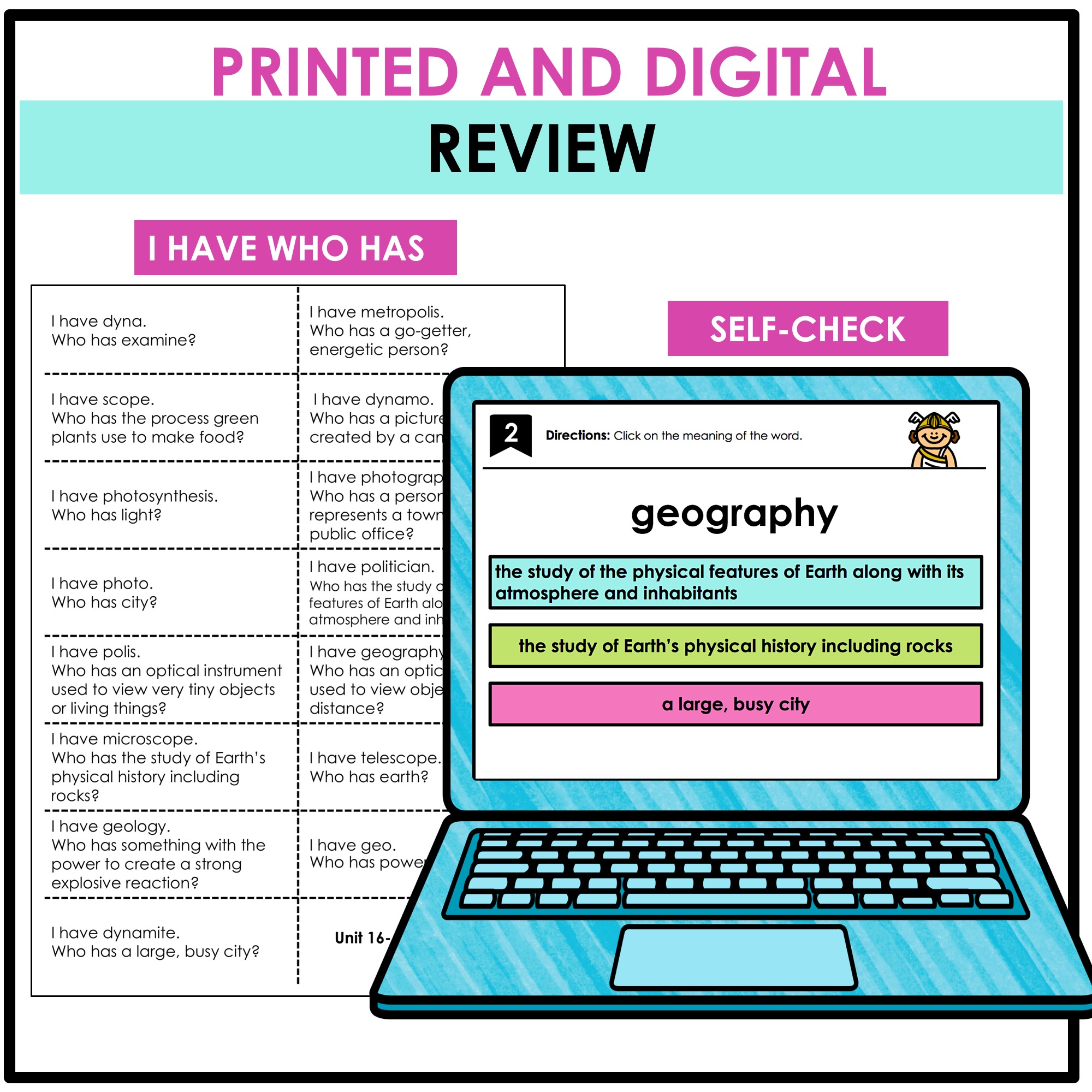 Unit 16– Greek Roots- dyna, geo, photo, polis, scope