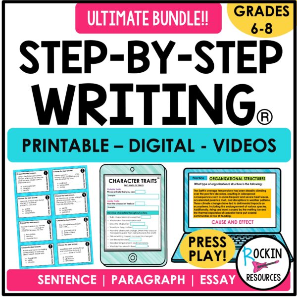 1. STEP-BY-STEP WRITING® PROGRAM WITH INTERACTIVE NOTEBOOK PAGES This resource includes all of the resources in the printable PDF program. You will find instructional units, scripted lesson plans, differentiated interactive notebook pages, practice, mentor text, anchor charts, modeling, task cards, graphic organizers, word lists, goal forms, student resources, templates, checklists, rubrics, passage prompts, thesaurus, writing process posters, spelling dictionary, pacing guide, and so much more!