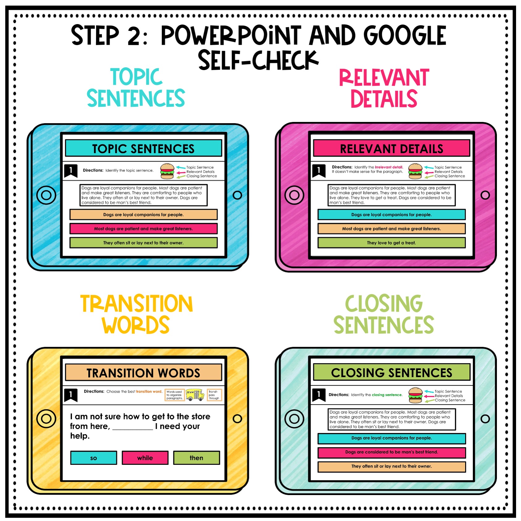✓ PARAGRAPH WRITING 2: There is a GOOGLE AND POWERPOINT version. It includes a self-check practice for each skill. It is ideal for independent practice.
