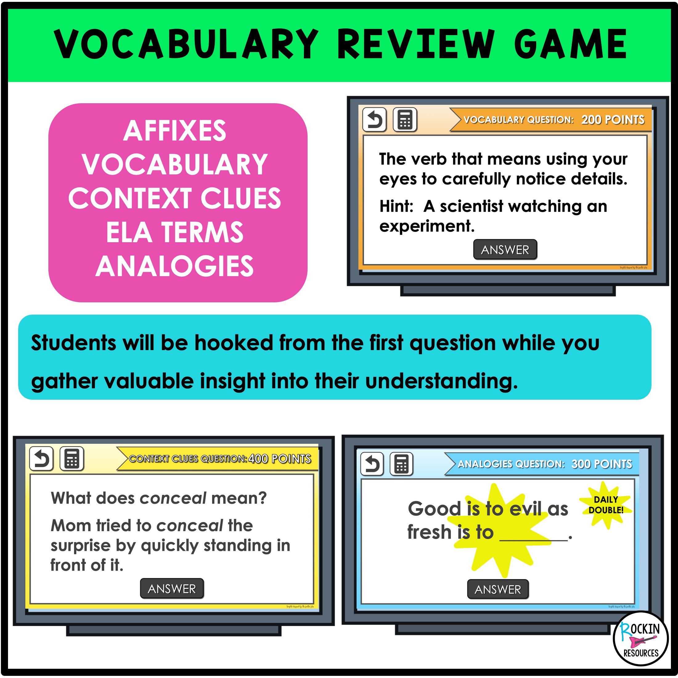 Management Tip: Each person in the group gets to be the leader and decide on the category and number. (Rotate the leader in the group so everyone has a chance or pick and answer.) Although the group can help decide on the answer, only the leader may answer. This will help reduce students’ tendency to blur out answers.