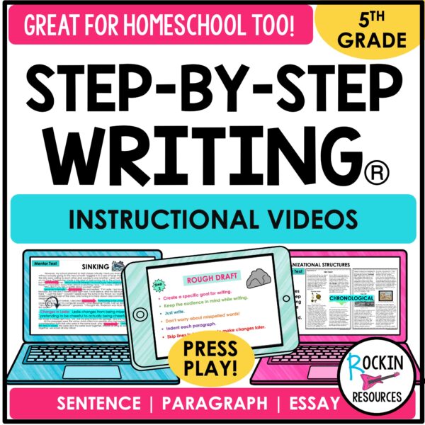 Since this is set up like the step-by-step writing programs and professional development, it works best if you follow the videos in order. In the essay writing units, the lessons build upon each other. It follows through the writing process with one prompt.