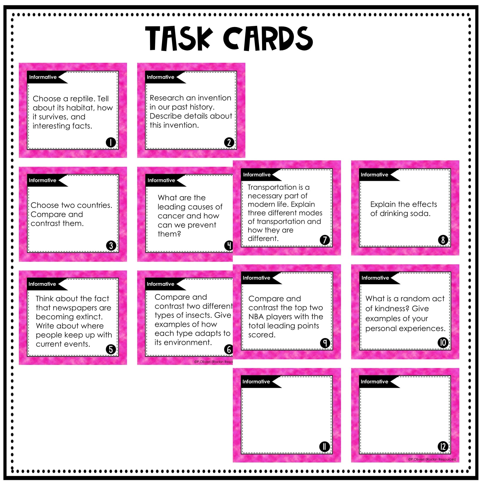 ✓ TASK CARDS- Each prompt is also written on a color-coded task card. This works well in centers or to give to early finishers.